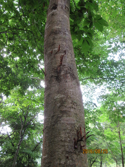 皆さん「くまだな」ってご存じですか?熊がこの木の実を食べながら暮らすために、この木の上に巣を作るそうです。幹には熊の爪痕もありますね(;^ω^)