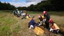 フットパスのお手伝いをしました。朝8時30分に西郷村文化センターへ集合し、フットパスについて説明を受けラジオ体操をしていざ出発です。今回は熊倉小学校6年・5年生の希望者を対象に折口原・真船コースの6.5q所要時間は3時間の予定での開催です。まずは、文化センターを出発し役場庁舎の北側にある石碑で立村100年記念碑などの説明を受け、真船地区へ真船小学校跡地、医王寺跡供養塔群、真船新屋供養塔群、鶴生供養塔群、諏訪神社・東福寺、穴薬師、庭渡神社などを巡りました。ポイントポイントでガイドさんから説明があり、給水所で、水分補給におやつを頂きました。文化センターへ戻りアンケートを記入し、婦人会の方が作った美味しい豚汁などを昼食に頂きました。何をお手伝いしたのかと言いますと参加してくれた熊倉小学校の子どもたちが、2班に分かれて歩道の無いところも歩くので班の中間と後で安全確保の誘導です。でも、しっかりした子どもさんばかりなのであまり役に立たずに自分が楽しみました。色々と準備していただいた、婦人会の皆さん、役場職員の皆さん、観光協会の皆さんお疲れさまでした。お世話になりました。ありがとうございました。今、村ではフットパス協議会準備委員会を立ち上げて、フットパスの普及とコースづくりを進めています。